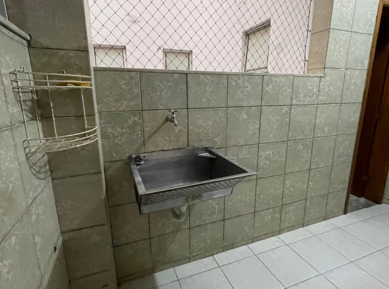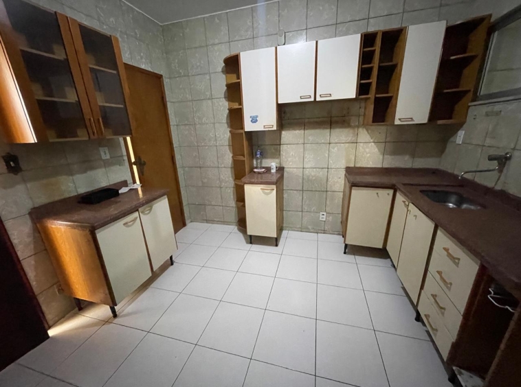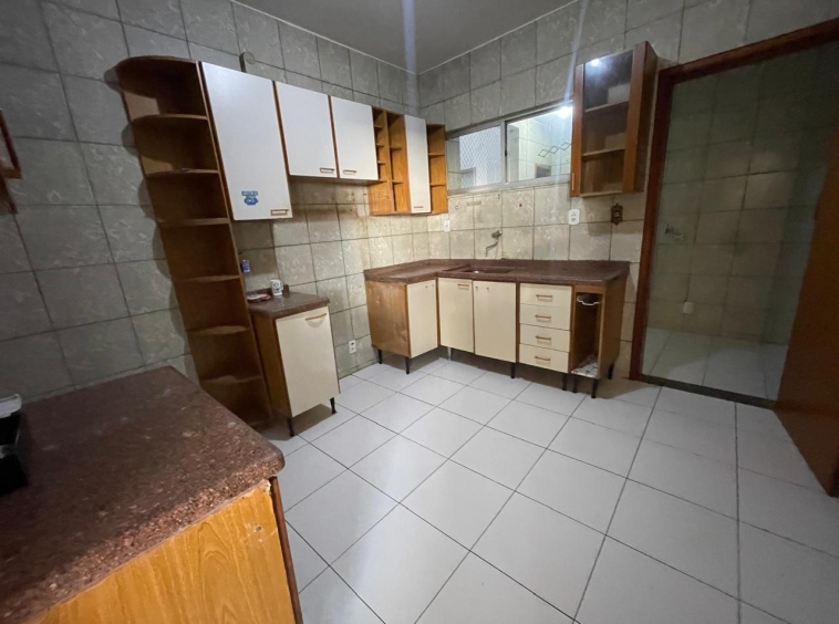 Apto com 4/4 sendo uma suíte, sala ampla, cozinha com armários, área de serviço, dependência com banheiro.
