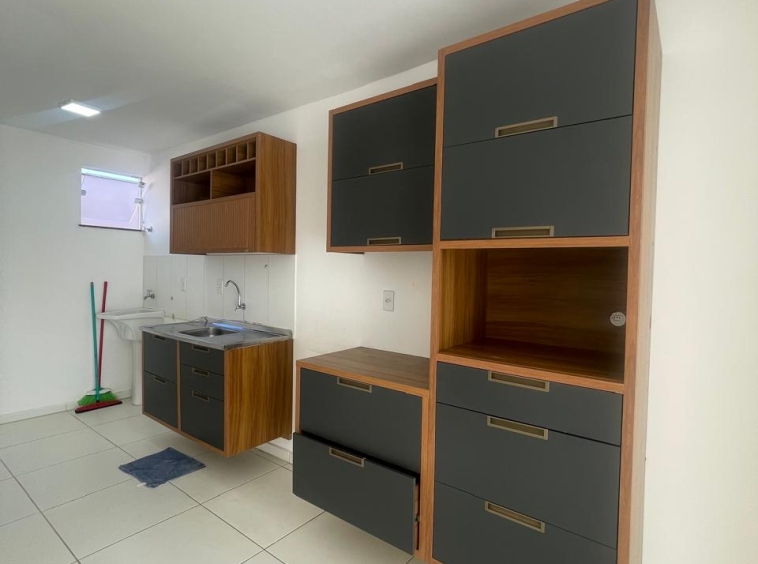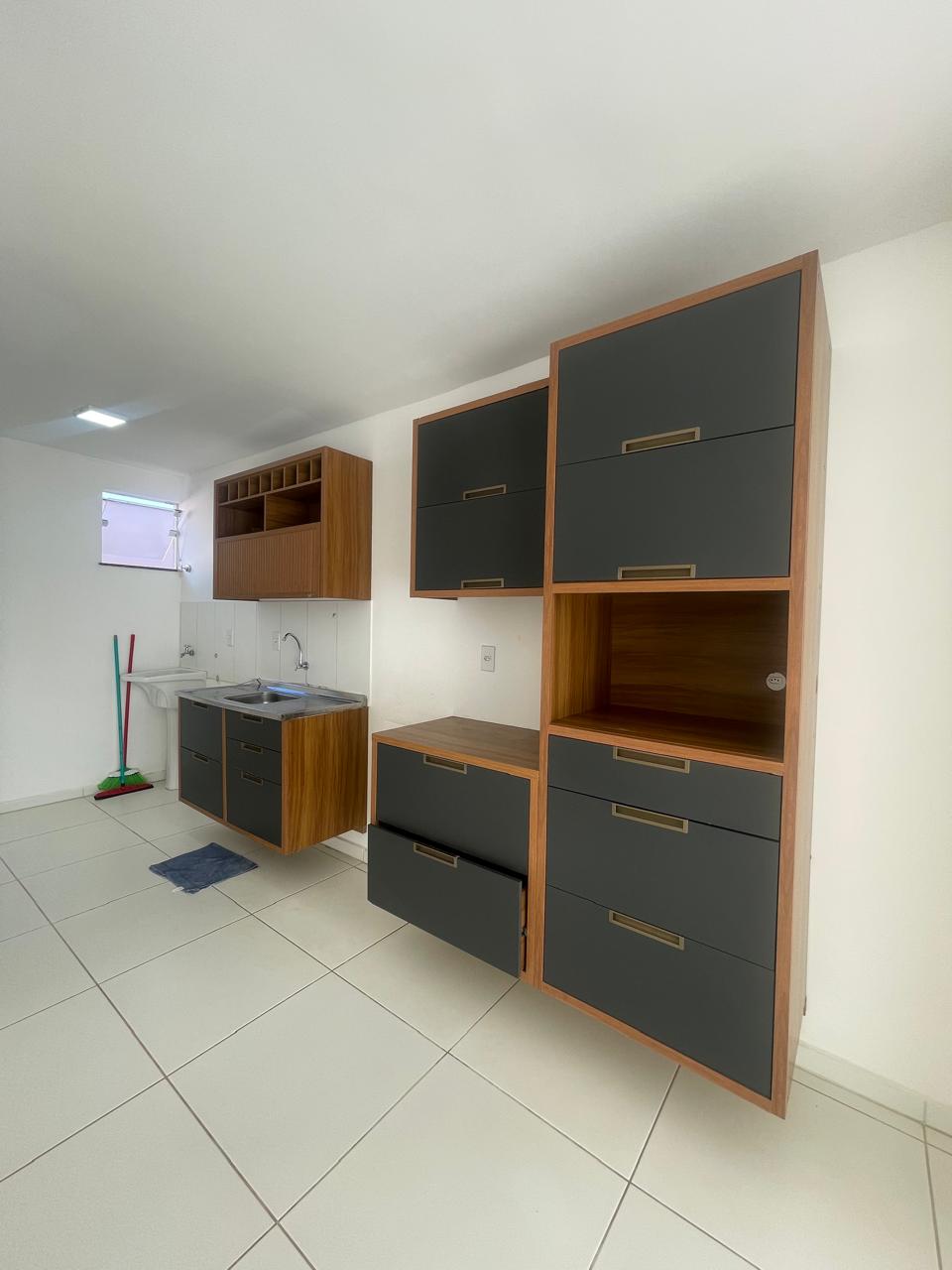 Apto com 3/4 sendo uma suíte, sala, cozinha com armários, área de serviço.