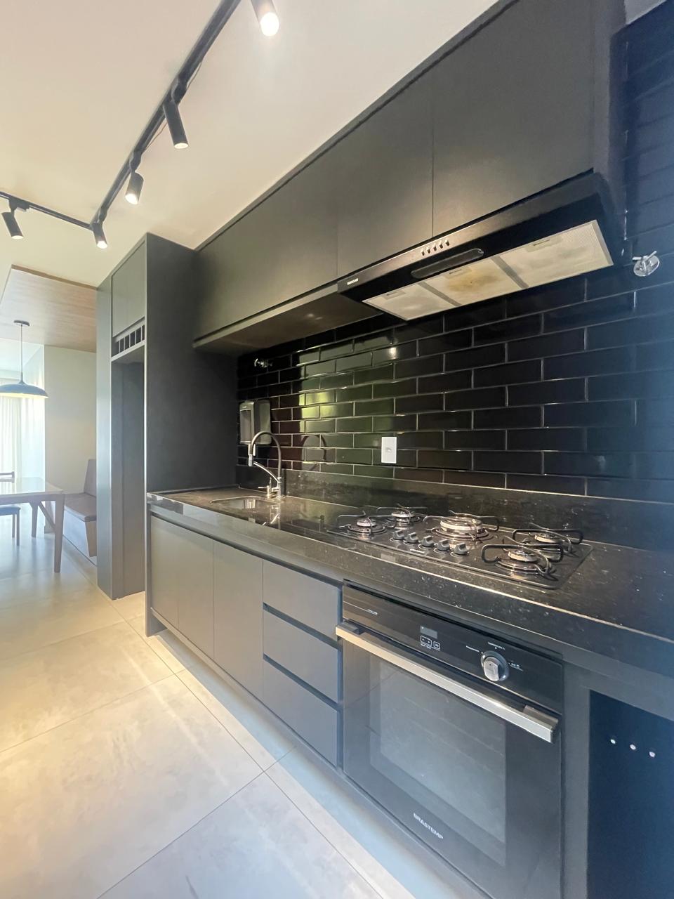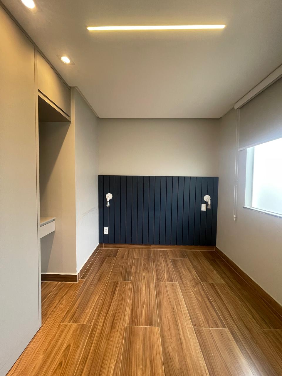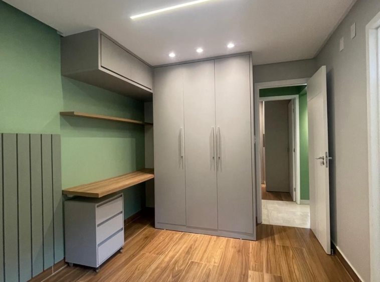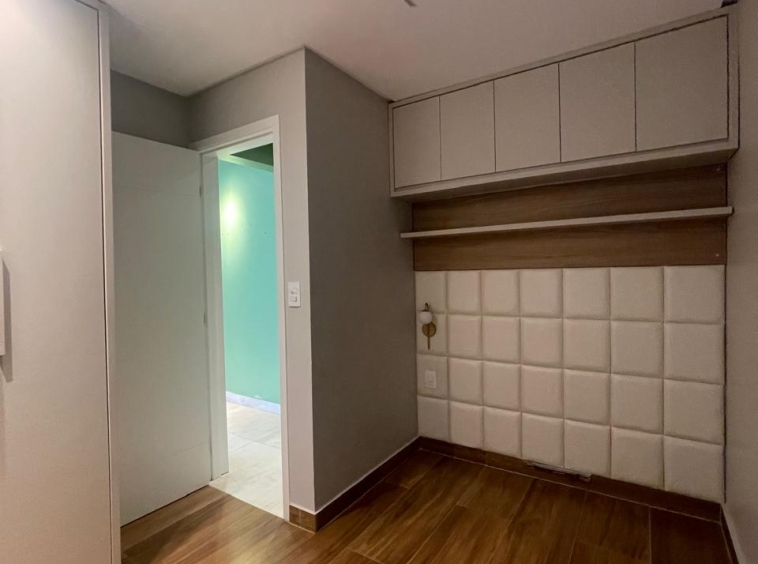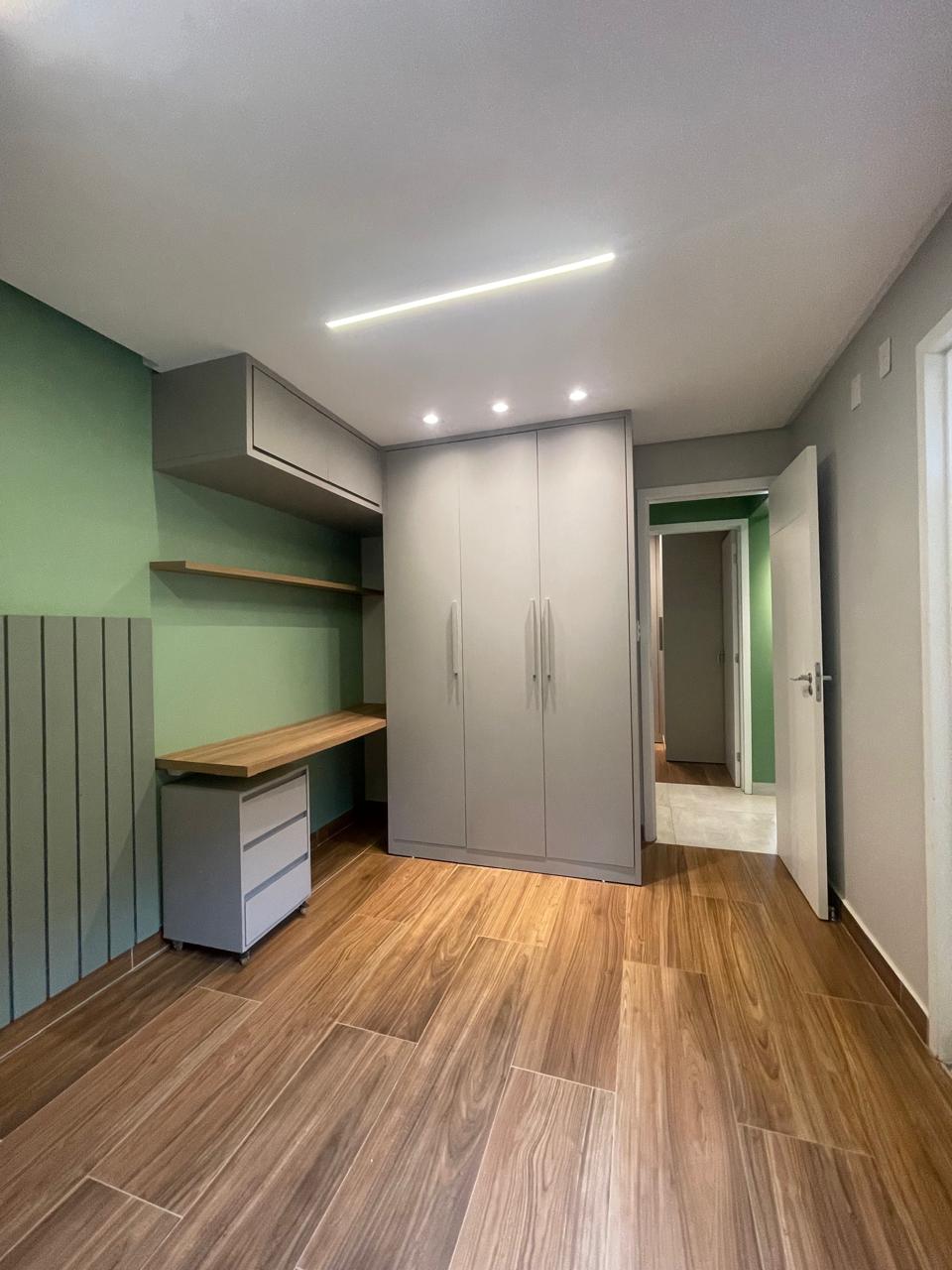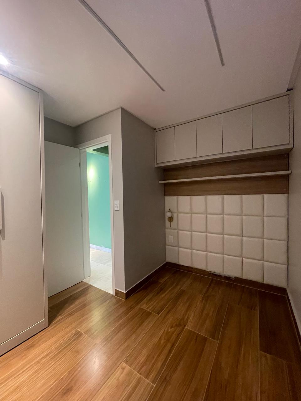 Apto com 3/4, sendo uma suíte, cozinha com armários, espaço gourmet.