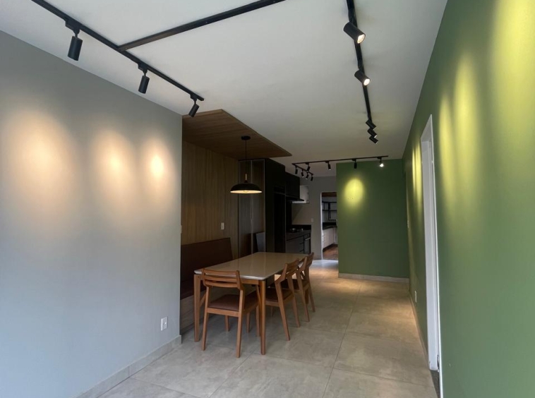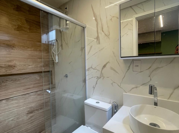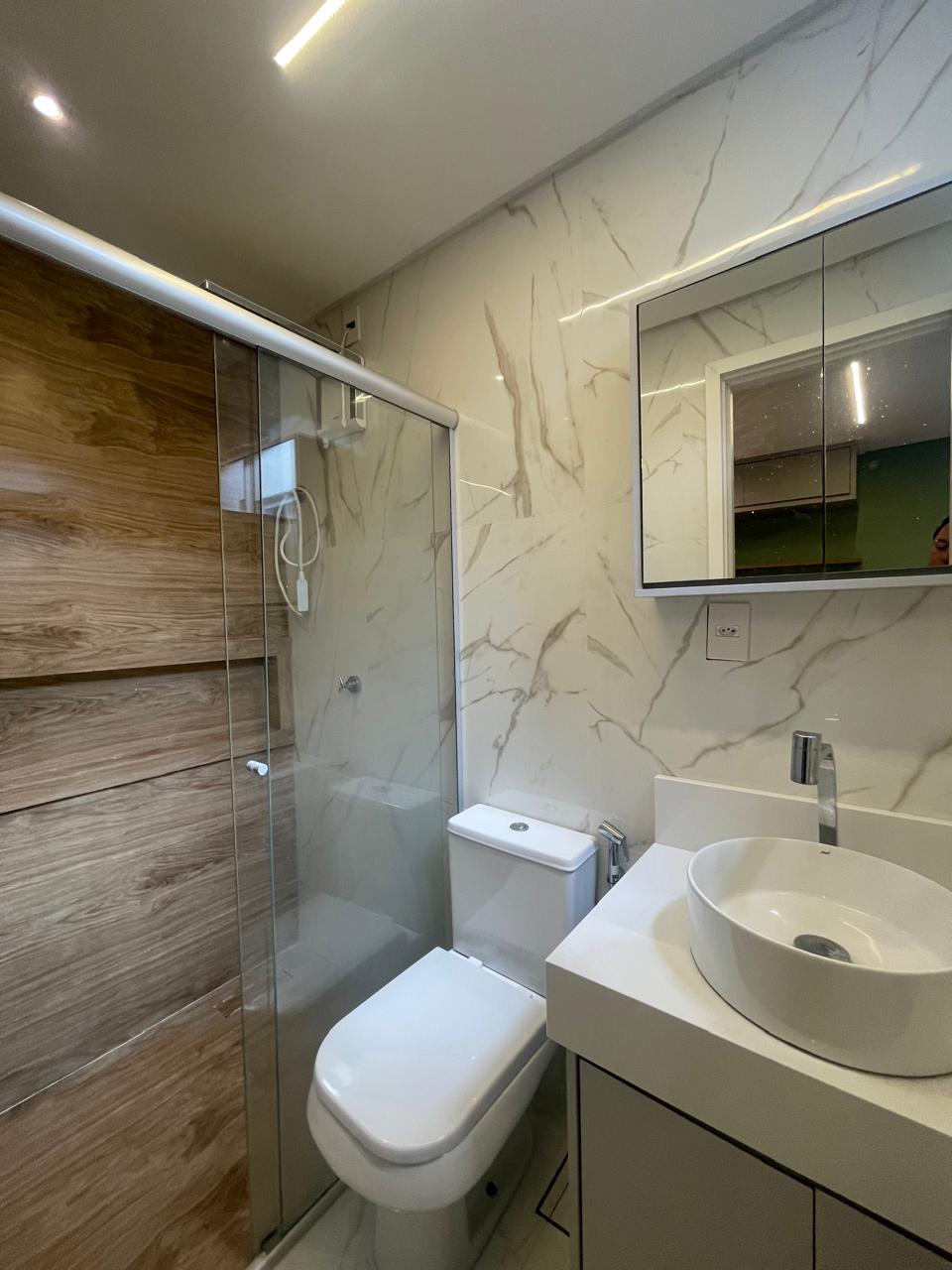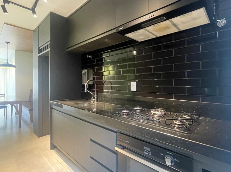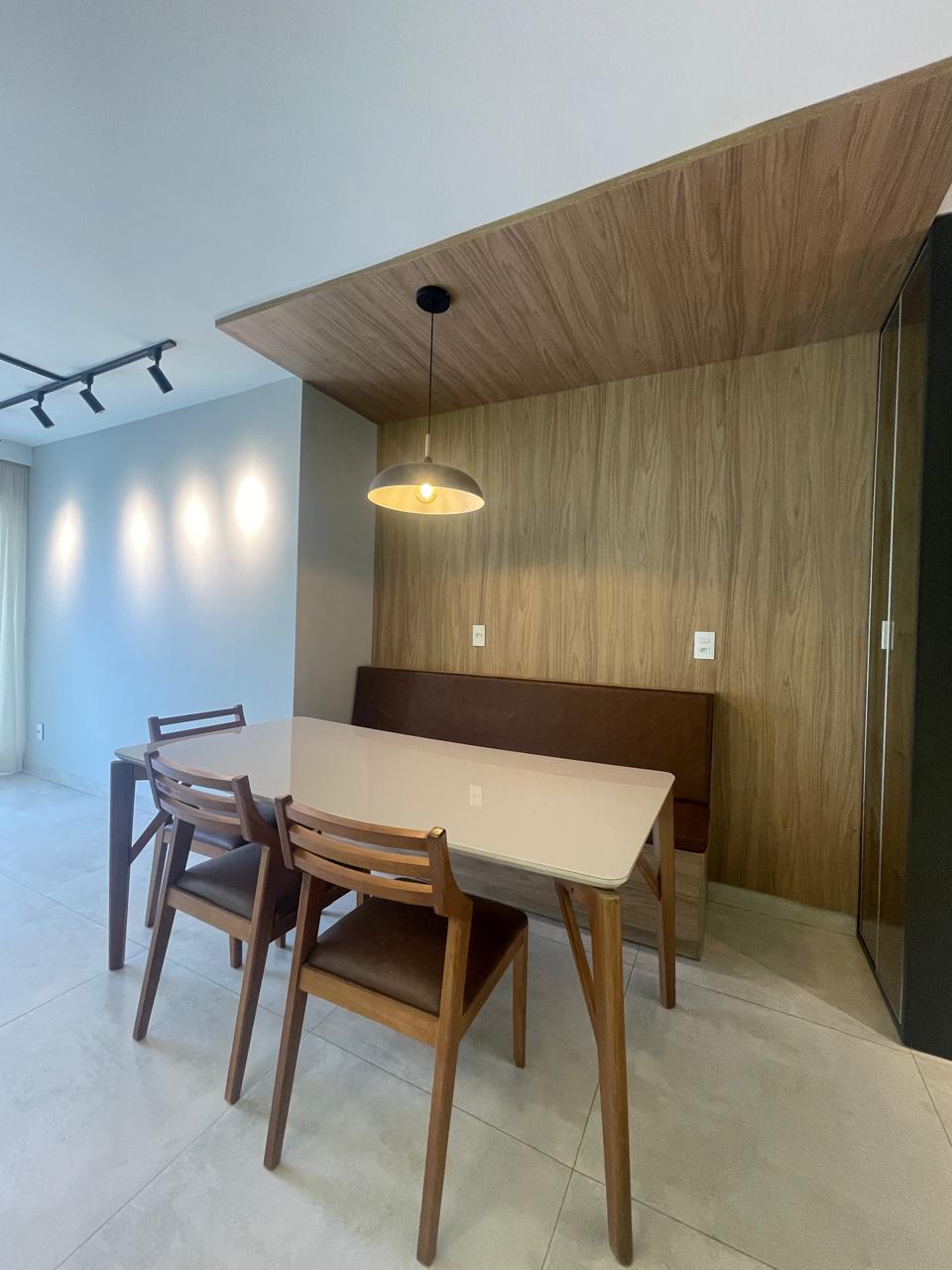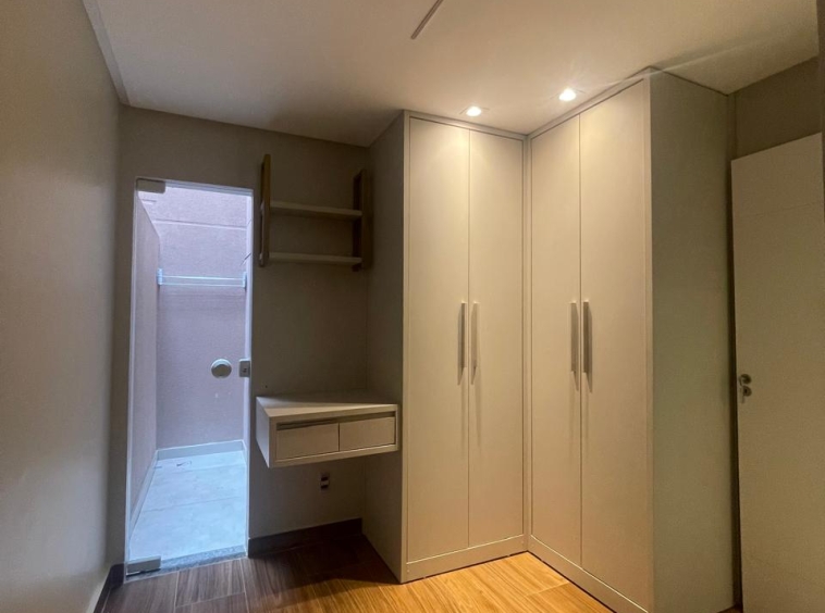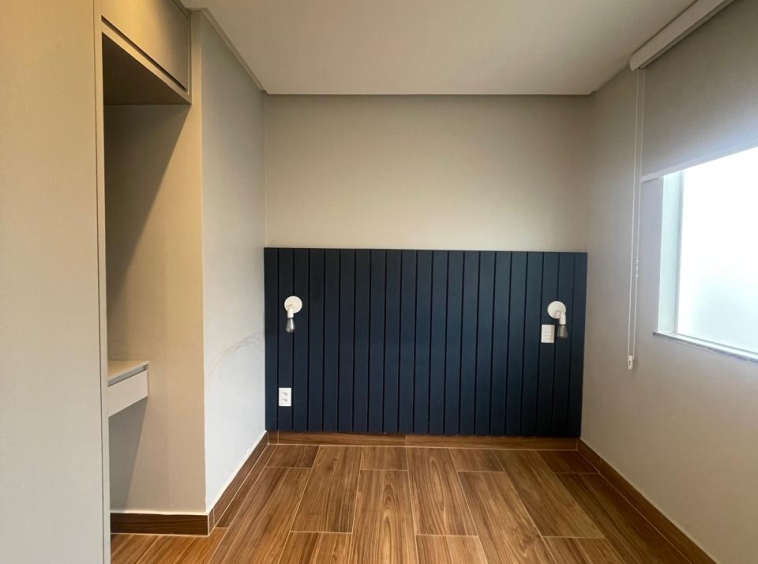 Apto com 3/4, sendo uma suíte, cozinha com armários, espaço gourmet.